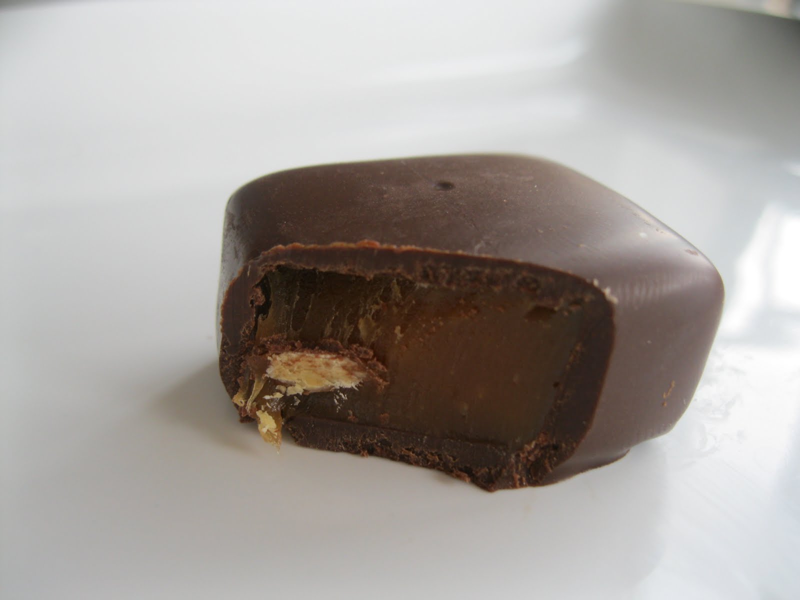 The aroma was earthy with a bit of vanilla, and the chocolate exterior was quite bitter to play well with the sugar from the caramel.